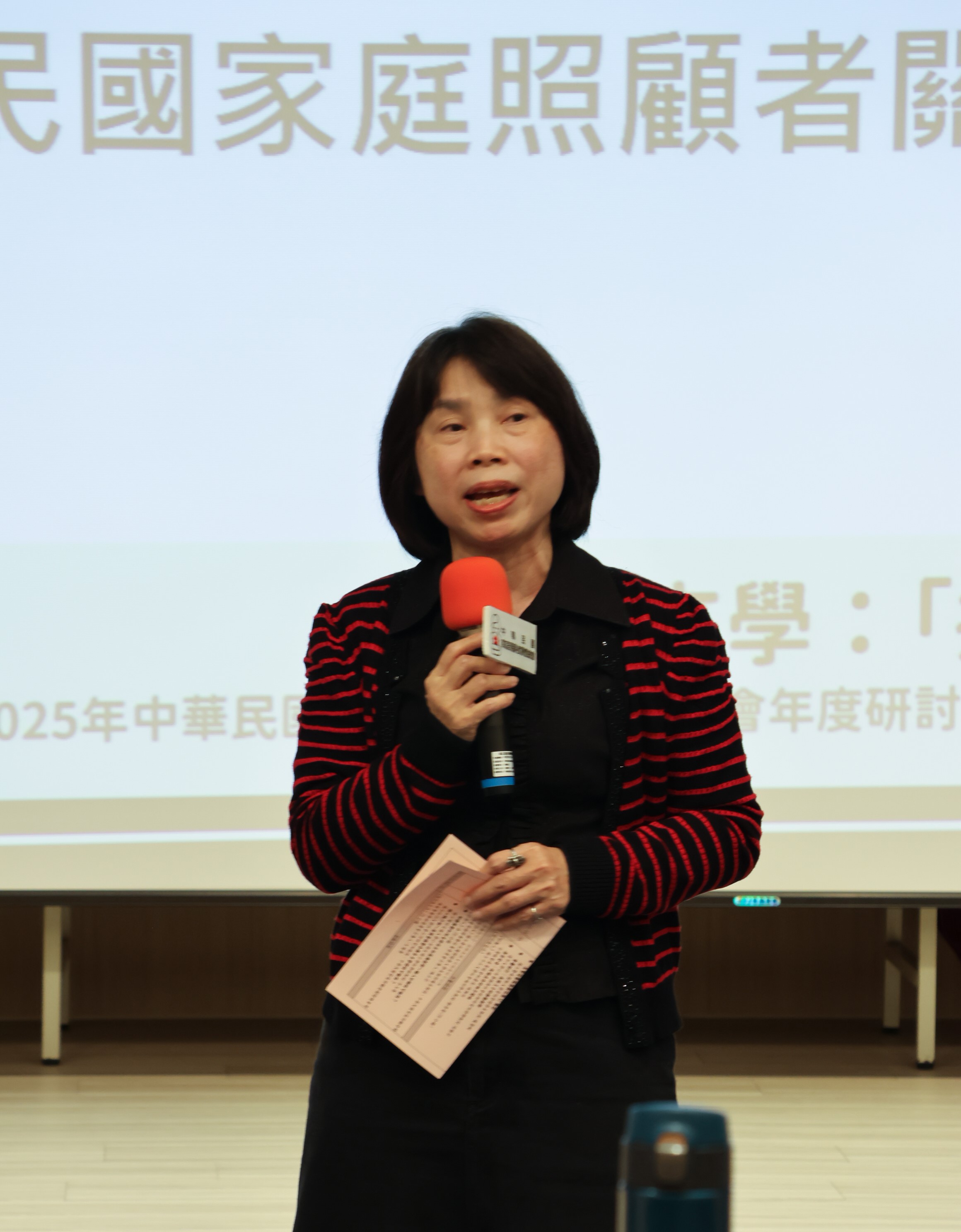 家總陳景寧秘書長先介紹台灣家庭照顧者現況,並分享家總近30年在台灣的努力;之後進行專題演講「互助喘息:串起社區共照力量」,景寧秘書長從「互助喘息」具預防危機的功能、原有五種喘息服務的不足(缺人/缺錢/缺彈性)、互助喘息的發展歷程(2023年開始成為國科會包容科技計畫、從第一年5個點開始,到第二年5縣市15個點,衛福部立基於本方案前兩年的基礎,已於2025正式委託家總擔任互助喘息的輔導團,且納為長照3.0的政策亮點,預定2026補助50個試辦點;接著景寧秘書長繼續講到互喘平台的建置與修改、互喘照服員的線上培訓與認證、據點管理員的線上媒合、家庭照顧者的線上預約,期望能達成家庭照顧者週休一日的目的。